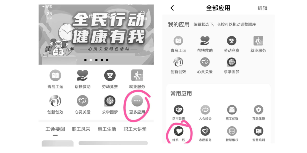 如果您单位有工会组织: 下载“齐鲁工惠”APP,选择所在单位工会并进行注册,通过审核后,在首页“更多应用”中,选择“缘系一线”平台,提交资料加入会员;