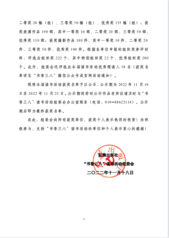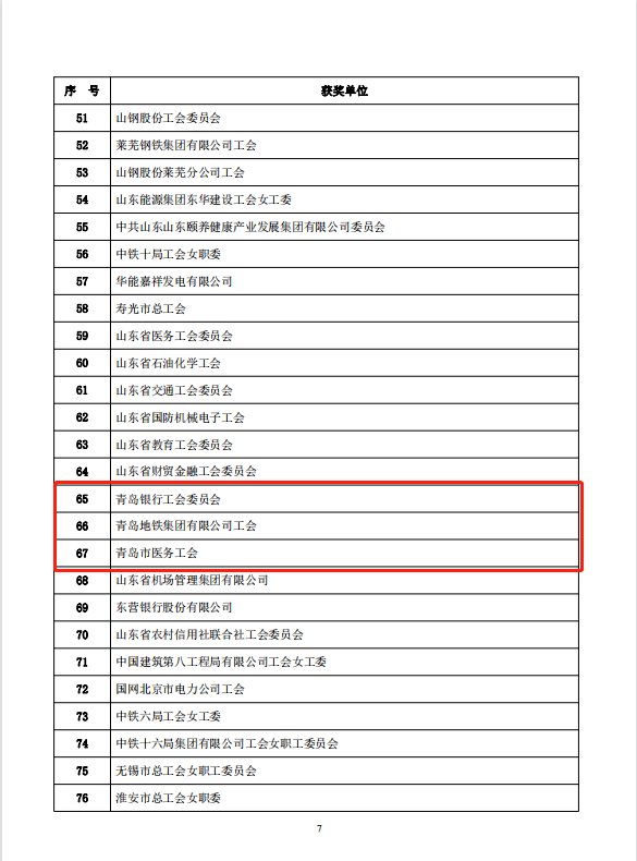 青岛银行工会、青岛地铁集团工会、青岛医务工会也获得全国第十届“书香三八”读书活动优秀组织奖。