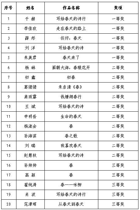 此次阅读活动是青岛市总工会“青悦读·工力量”阅读品牌的首期活动,以“春如歌”为主题畅意朗诵春天,参赛者自主选择并朗诵与“春”相关的诗歌,以视频形式上传至“齐鲁工惠·青岛行”APP进行网络投票。活动有效征集作品105个,综合网络投票和专家评审打分,共评选出一等奖5名,二等奖10名,三等奖15名。现将获奖名单公布如下: