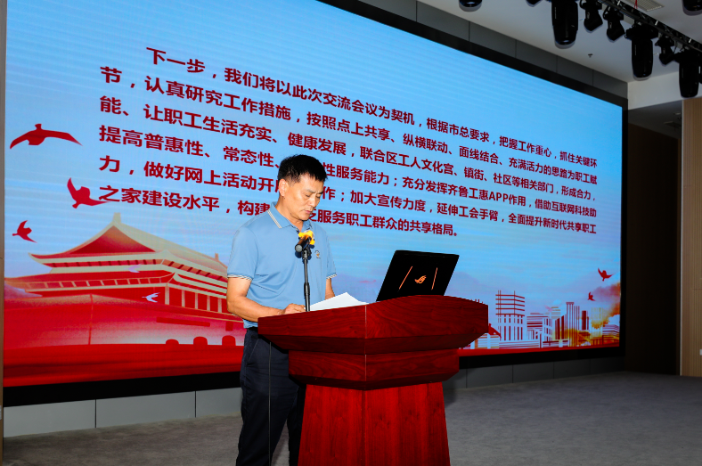 会上解读了新时代区域共享职工之家管理服务系统管理应用情况,即墨区总工会、莱西市宏远桃园东方工会联合会、平度市凤台街道星光社区工会联合会进行交流发言。