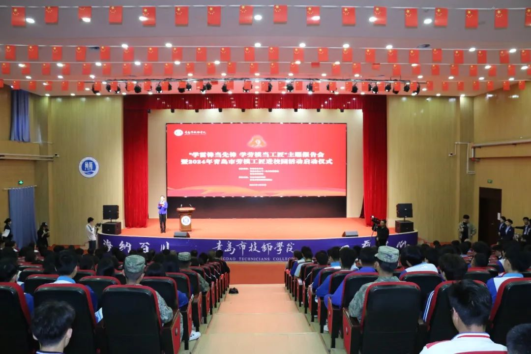 4月26日上午,“学雷锋当先锋 学劳模当工匠”主题报告会暨2024年青岛市劳模工匠进校园活动启动仪式在青岛市技师学院红色报告厅成功举行。活动邀请了第十七届、十八届中华全国总工会副主席(兼)郭明义,中华全国总工会原副主席(兼)许振超现场宣讲,引导广大青少年在“拔节孕穗期”深刻领悟“螺丝钉”精神和劳模工匠精神,树立远大理想,锤炼过硬本领,勇担时代重任。今年青岛市总工会、青岛市教育局将组织开展劳模工匠进校园活动100场,带动各级实现活动广覆盖、见成效,让劳模工匠成为青少年追逐的时代偶像,推动实现劳动最光荣的社会风尚蔚然成风。