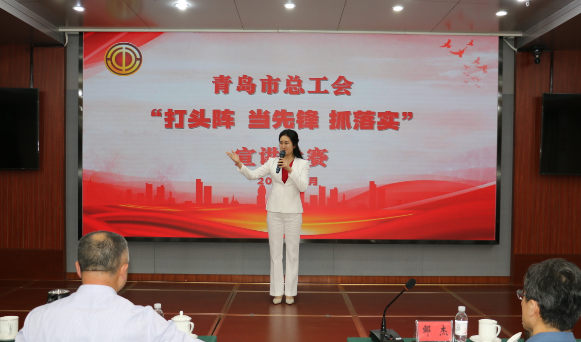 为深入学习宣传贯彻习近平新时代中国特色社会主义思想,全面展现市总工会各级党组织和广大党员干部在奋力谱写中国式现代化建设“青岛新篇章”中的新气象新作为,5月28日,市总工会举办“打头阵 当先锋 抓落实”宣讲比赛,市总工会党组成员、经审委主任邹杰,市总工会副局级领导干部黄德华、许赫参加活动并担任评委。