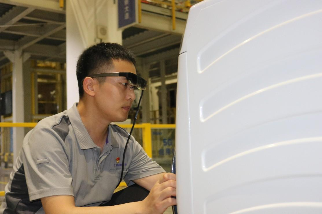在公司组织的全员体检上,徐鑫看到员工CT扫描时有感而发,凭借前期5G-AR的案例经验找到信息化负责人进行了学习探索新领域,主动牵头进行5G自动检测人机协作项目,项目开始初期最大的困难是数据库要从零开始搭建,徐鑫积极发动各线体检验人员对检测的机器不断拍照、收集检出各类问题,每天仅照片就要浏览标定2.8万张,为了能够更好的贴合生产场景,在设备完成搭建尝试运行的时候,徐鑫更是在现场经常一呆就是一天,不断通过现场的实际运转状态,灵活调整人机协作设备能力,检测准确率99.9%,效率提高了80%,高端产品卡萨帝0不良,并成功申请了用于家电外观检测系统的自动调节缓存线的实用新型专利,连续2批入选国家工信部典型应用案例。