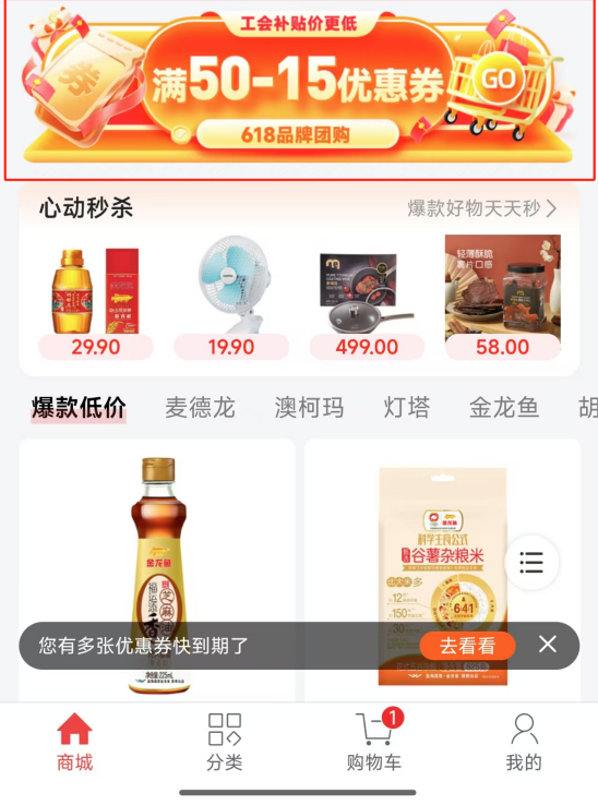 注:优惠券仅限惠工商城品牌专区使用,具体规则详见活动页面。