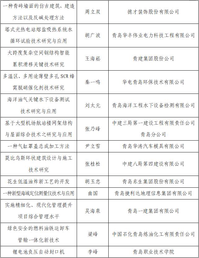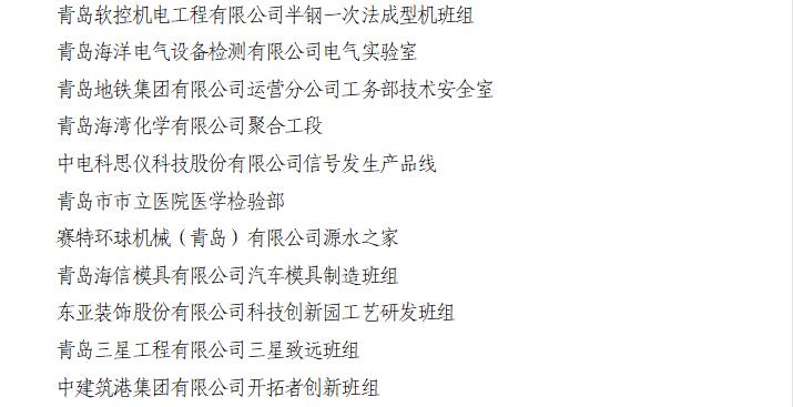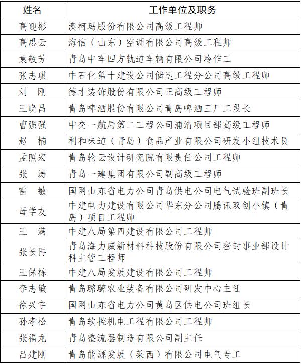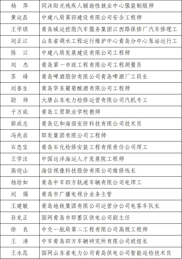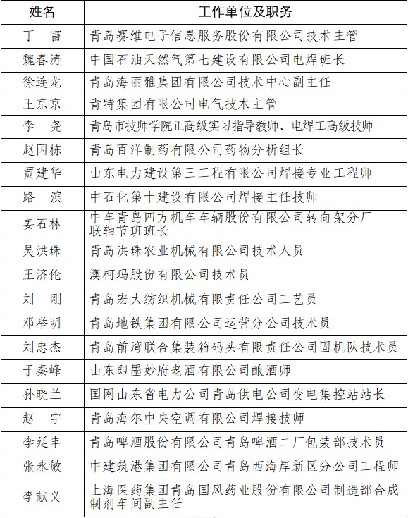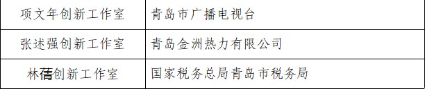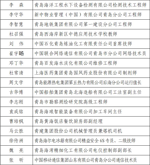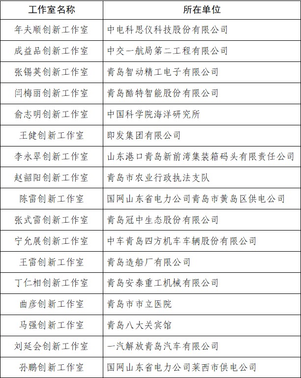 青岛市劳模和工匠人才创新工作室拟命名名单(20个)
