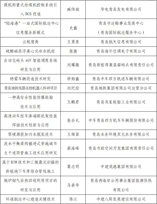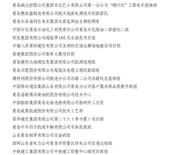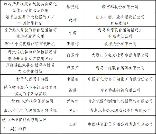 2022年,青岛市总工会组织了青岛(大)工匠、青岛市全员创新企业、青岛市劳模和工匠人才创新工作室、青岛市创新型班组、青岛市职工创新能手、青岛市职工创新成果的培育选树工作。为充分发扬民主,接受社会监督,现将拟公布名单予以公示(排名不分先后),公示时间为2022年11月3日至11月9日(5个工作日)。如有不同意见,可在公示期内以电话方式向青岛市总工会反映。